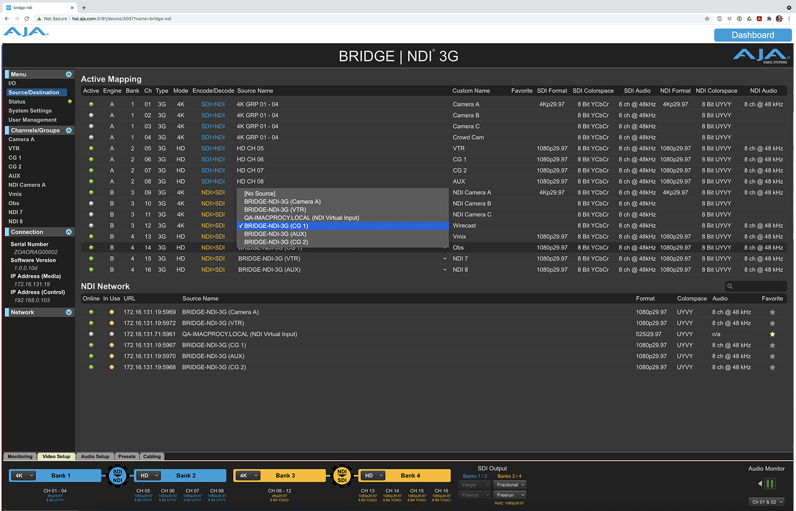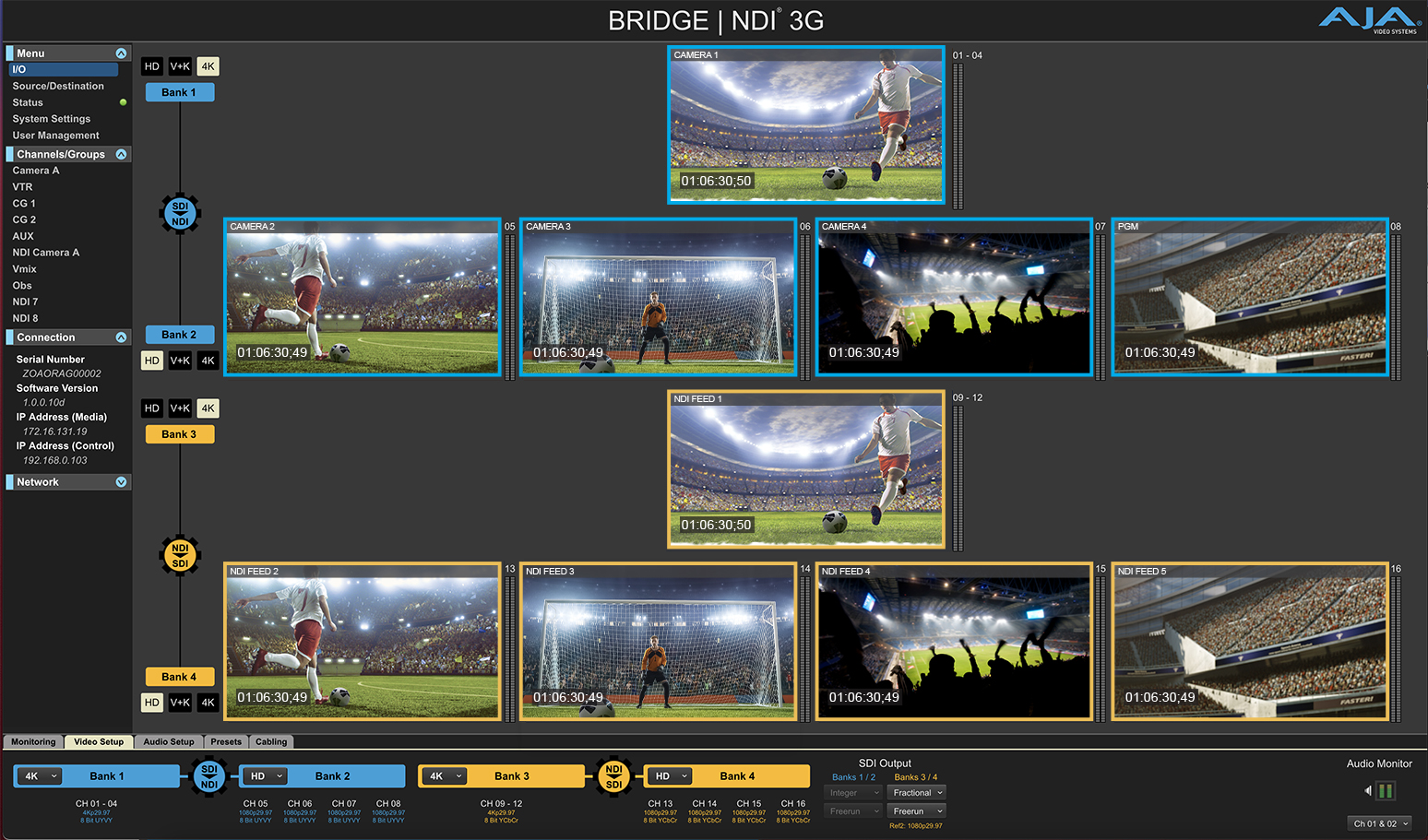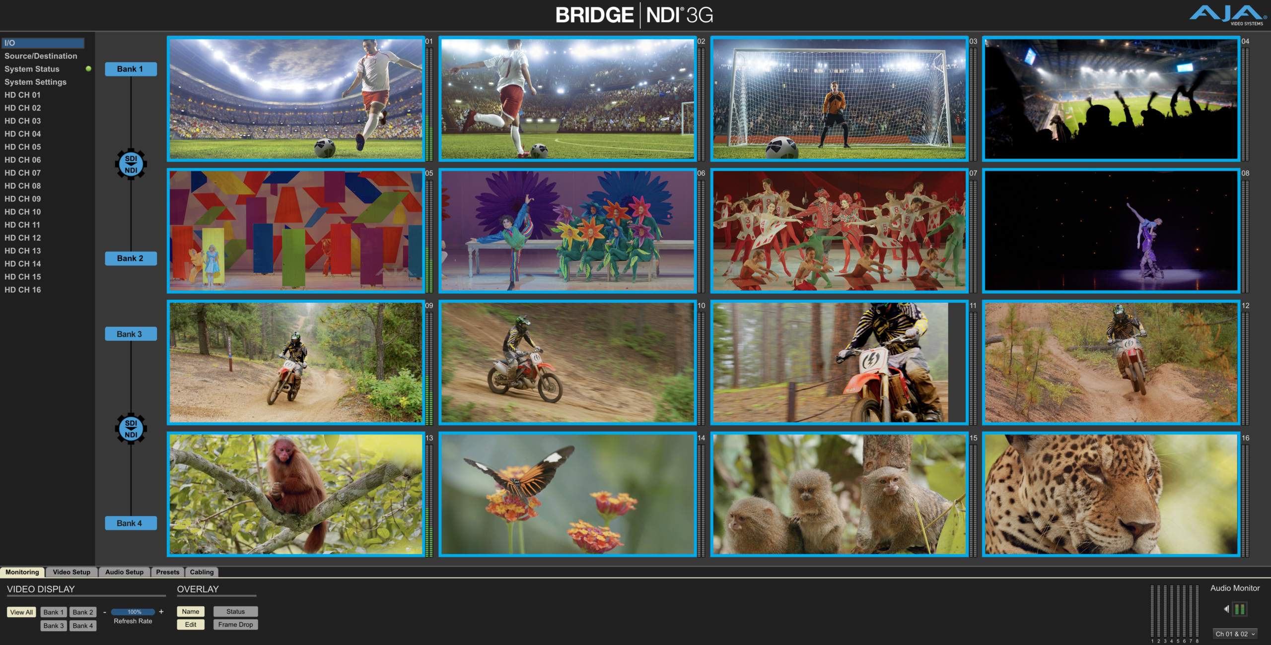 BRIDGE NDI 3G는 모든 16개 채널을 활용하는 방법에 있어 엄청난 유연성을 제공합니다.