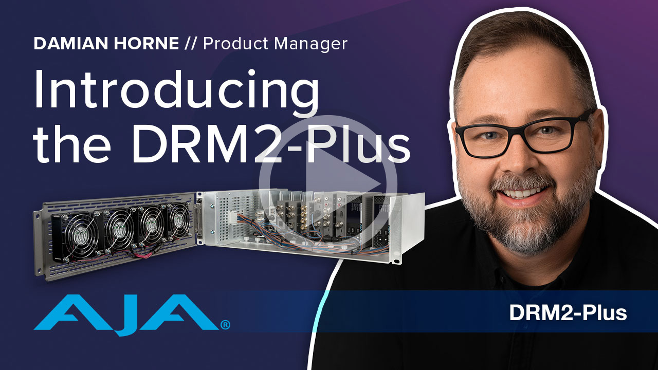 이 영상에서 AJA 제품 관리자 Damian Horne은 AJA 미니 컨버터를 전문적으로 장착하고 전원을 공급할 수 있는 3RU 랙 마운트 프레임인 DRM2-Plus를 소개합니다.
