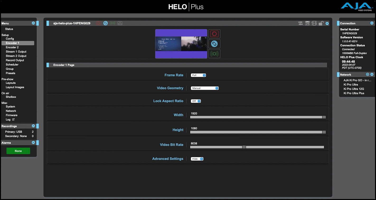 HELO Plus는 표준 웹 브라우저, 이더넷 연결, 데스크톱 또는 랩톱 컴퓨터를 사용하여 원격으로 쉽게 구성할 수 있습니다. HELO Plus의 모든 기능은 웹 UI에서 액세스할 수 있으며, 탭 브라우저 창을 통해 여러 HELO Plus 장치를 쉽게 제어할 수 있습니다. 사용자의 요구 사항에 맞게 설정하면 HELO Plus는 기기 전면에 있는 스트림 및 레코딩 버튼을 통해 제어될 수 있으며, 오디오 레벨 LED 미터가 모니터링을 위한 피드백을 제공하거나 포함된 웹 기반 UI에서 시스템을 직접 제어할 수 있습니다. 또한 시스템의 통합 REST API를 통한 원격 제어 옵션도 있습니다.